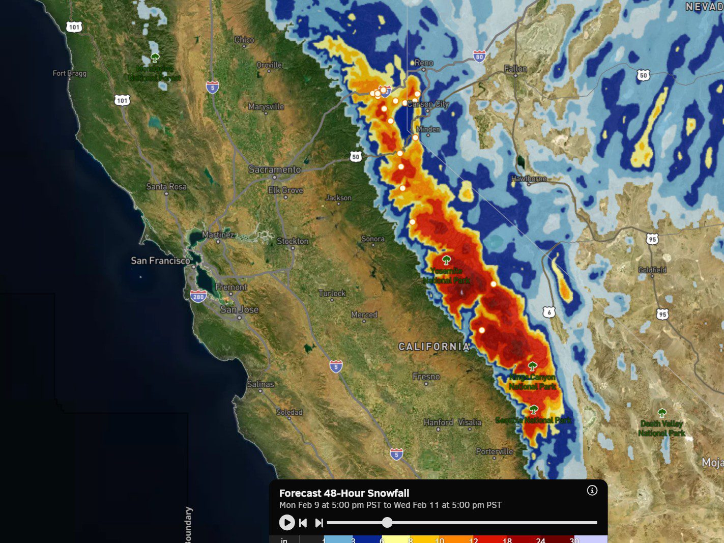 Monday Night – Tuesday Showers: The cold front has draped itself across the northern Sierra as of Monday morning. That has brought in some colder ...
