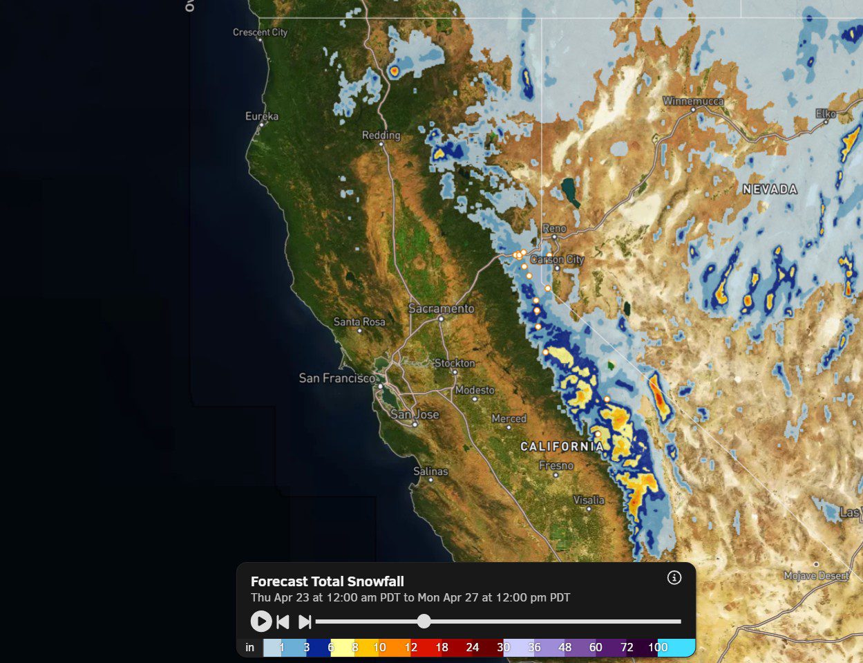 Snowfall Report: The low-pressure center slowly moved through northern CA on Sunday. That was the perfect track to keep steady snow showers falling over the ...