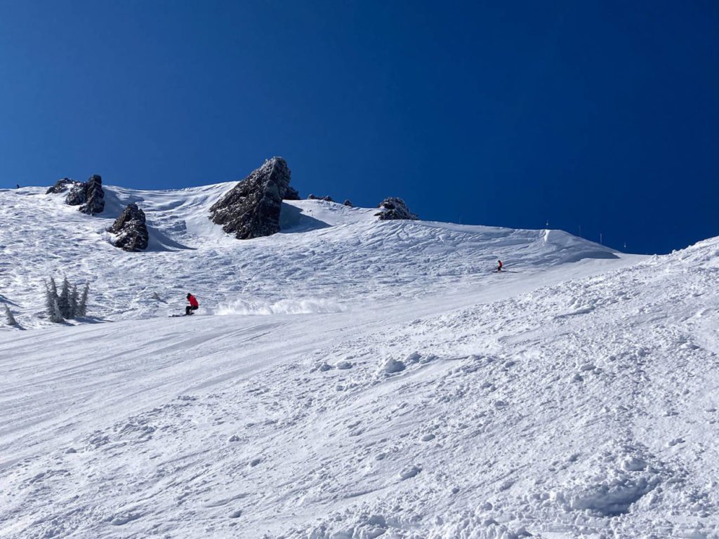 The groomed part looked perfect, but this time we traversed to ski the left side of Wolverine. There was a very soft tracked powder, and it skied perfectly! The steeper areas around Waterfall and Three Sisters didn’t have enough fresh snow to be enjoyable, though.