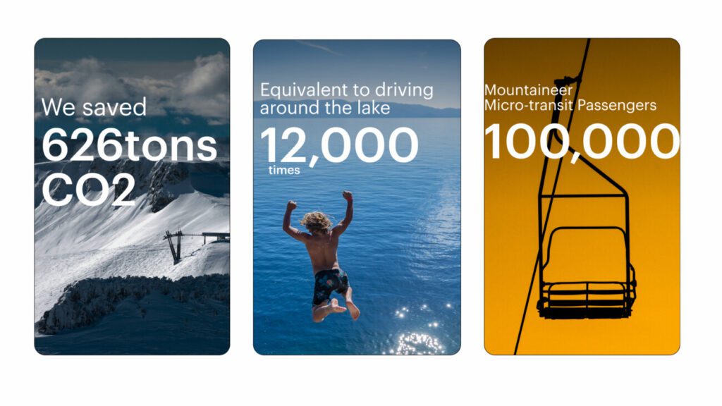 In partnership with Mountaineer Transit Company and your use of the free on-demand service, we are on track to have served 100,000 riders this season. Not only did this reduce traffic on roads within Olympic Valley and Alpine Meadows, your ridership increased parking availability, further reduced carbon emissions and reinforced that with viable options, we can change behavior in favor of convenient alternatives.