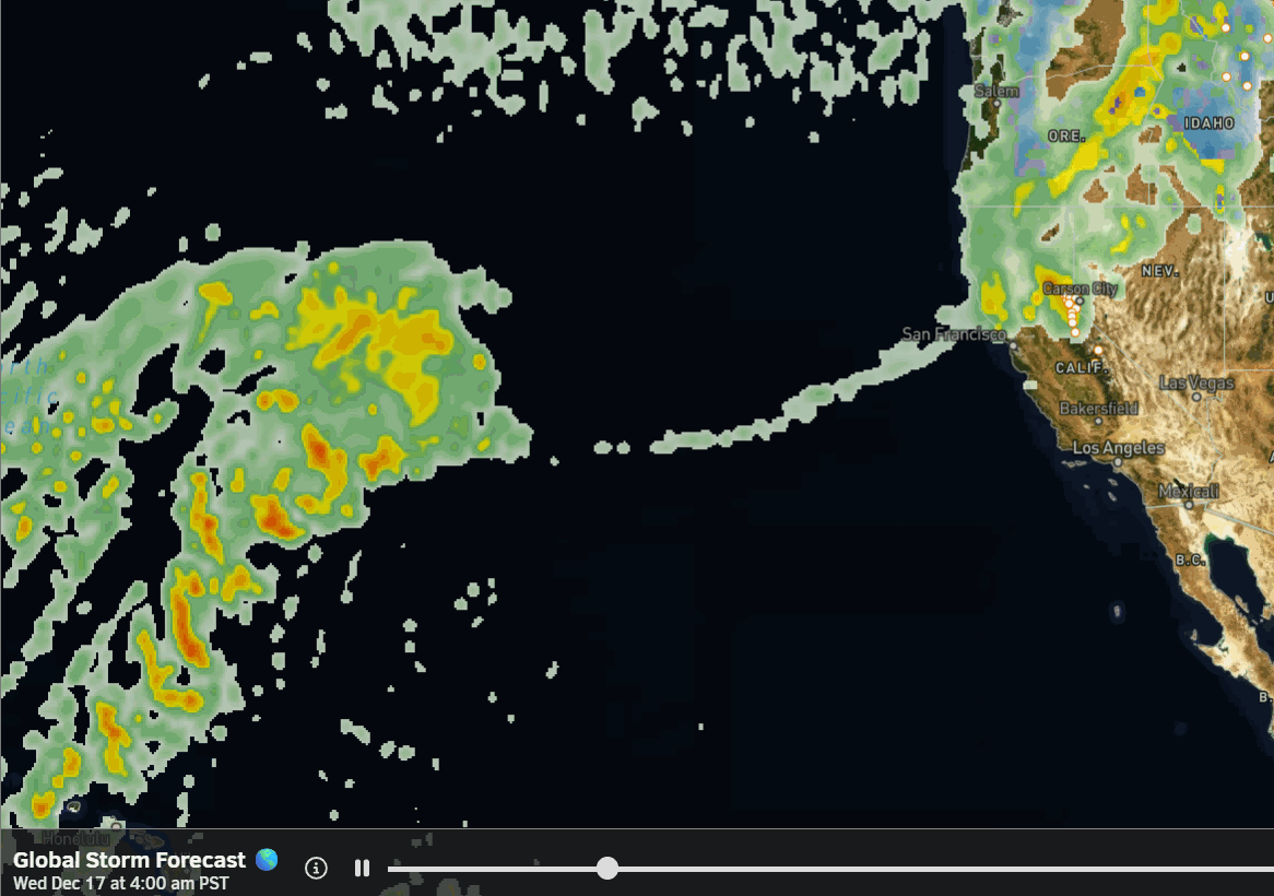 We may or may not see a break between storms on Tuesday, the 22nd, as the colder and deeper trough digs south along the West Coast. This pattern is forecast to last into the last week of December. It is expected to open the door to colder and wetter storms that dig farther south into CA by the 23rd through at least the 25th-26th.